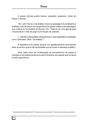analista, o ato de lançar-se à experiência do passe implica outra passagem