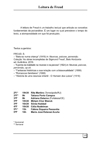 Coleção ‘As obras incompletas de Sigmund Freud’, Belo Horizonte